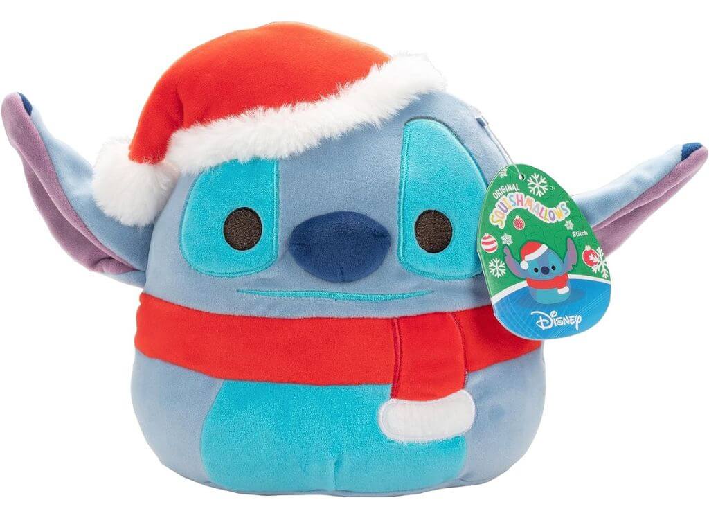 This holiday-themed Stitch squishmallow is not just for decoration; it's a soft, huggable friend that embodies the spirit of the season. It's a wonderful gift that can be cherished during the holidays and beyond, bringing a touch of Disney magic to every cuddle.